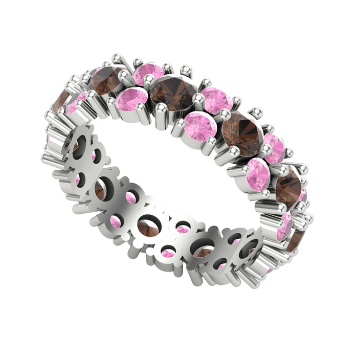 Dumanlı kuvars ve pembe kuvars 8 ayar beyaz altın yüzük