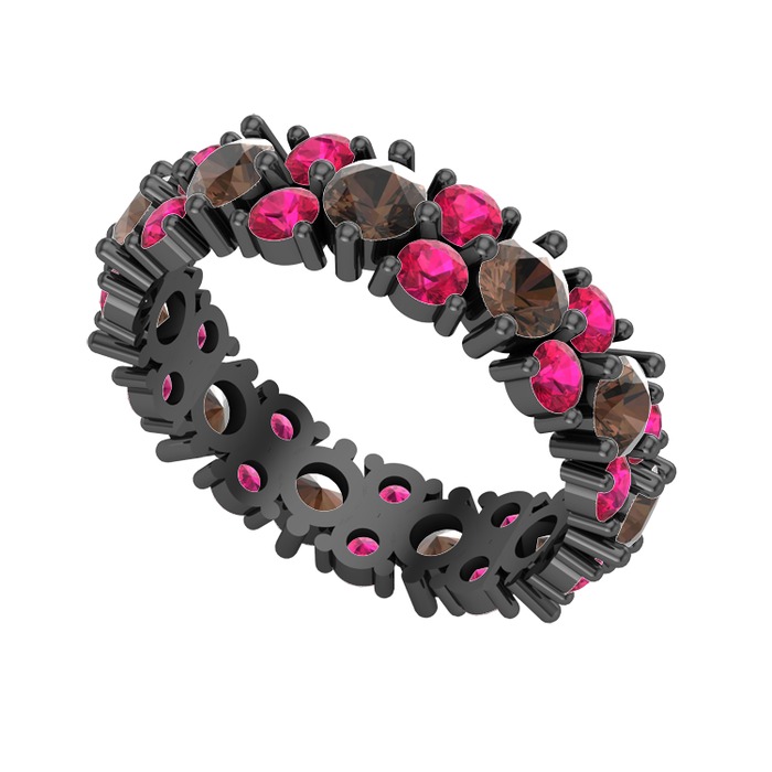 Dumanlı kuvars ve rodolit garnet 925 ayar siyah rodyum kaplama gümüş yüzük