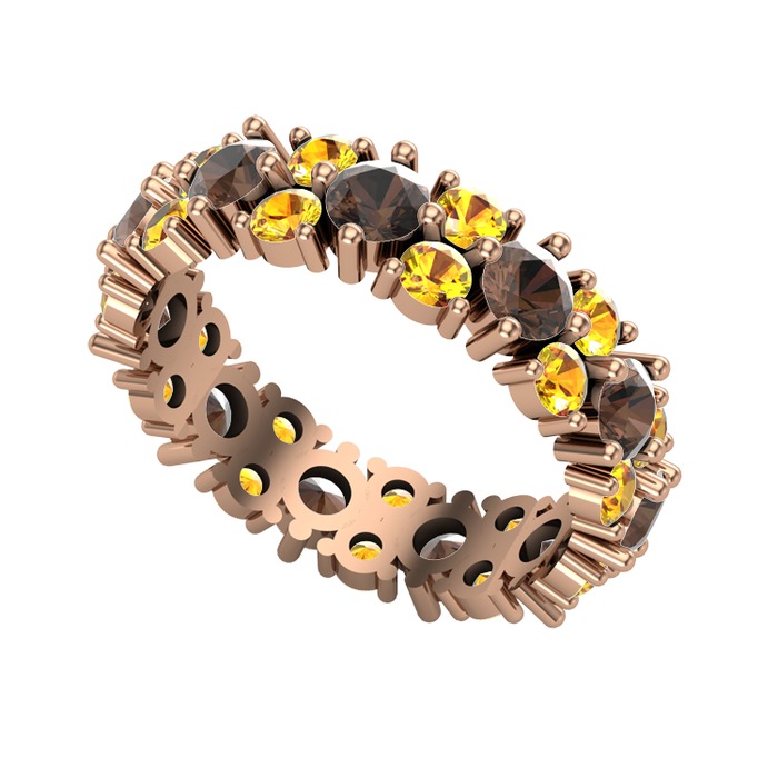 Dumanlı kuvars ve sitrin 14 ayar rose altın yüzük
