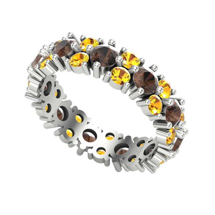 Dumanlı kuvars ve sitrin 925 ayar gümüş yüzük