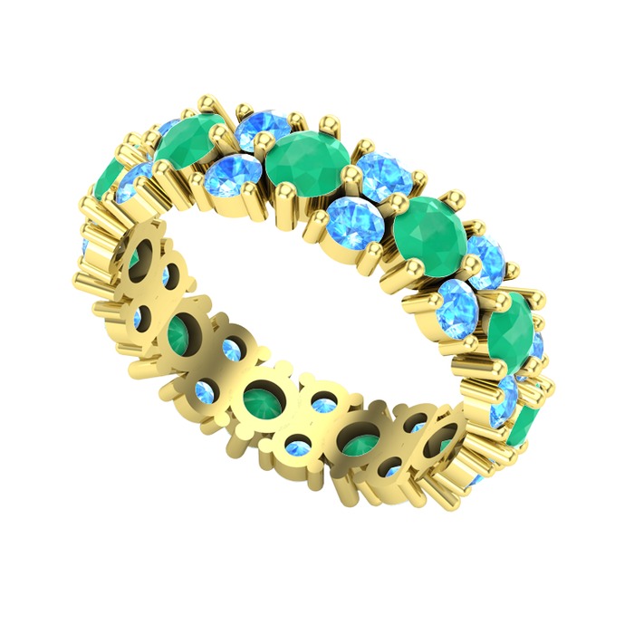 Kök zümrüt ve akuamarin 925 ayar altın kaplama gümüş yüzük