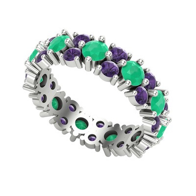 Kök zümrüt ve ametist 925 ayar gümüş yüzük