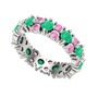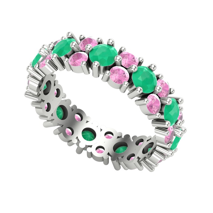 Kök zümrüt ve pembe kuvars 14 ayar beyaz altın yüzük