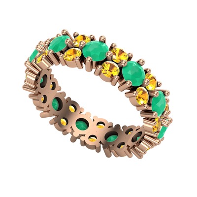 Kök zümrüt ve sitrin 18 ayar rose altın yüzük