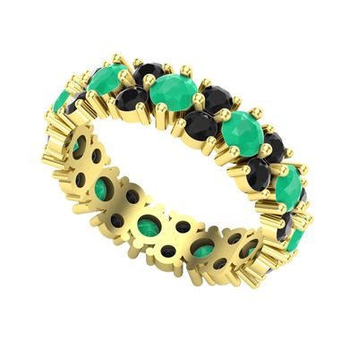 Kök zümrüt ve siyah zirkon 8 ayar altın yüzük