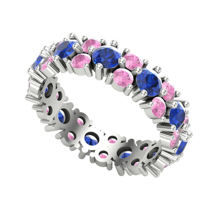 Lab safir ve pembe kuvars 18 ayar beyaz altın yüzük