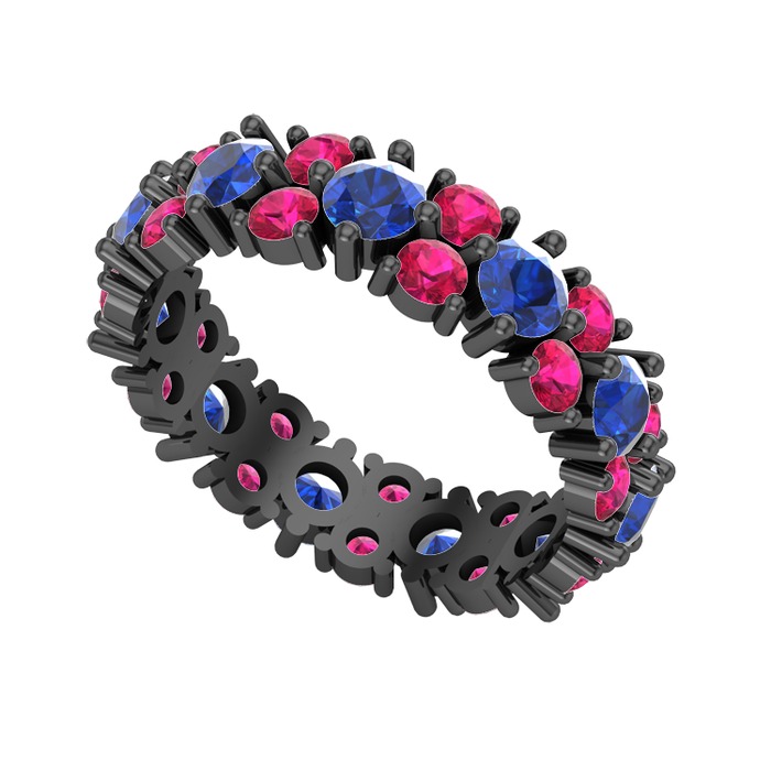 Lab safir ve rodolit garnet 925 ayar siyah rodyum kaplama gümüş yüzük