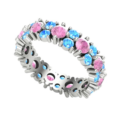 Pembe kuvars ve akuamarin 18 ayar beyaz altın yüzük