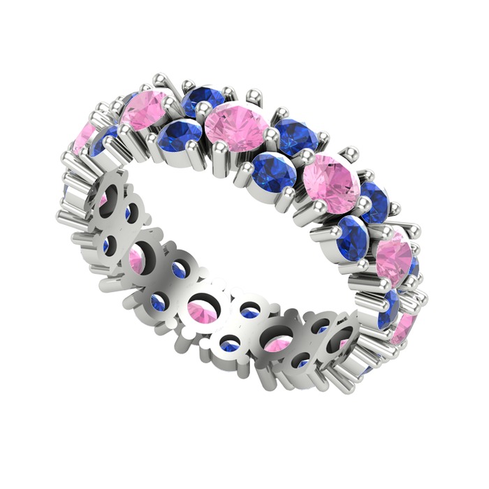 Pembe kuvars ve lab safir 14 ayar beyaz altın yüzük