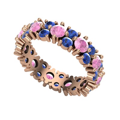 Pembe kuvars ve lab safir 14 ayar rose altın yüzük
