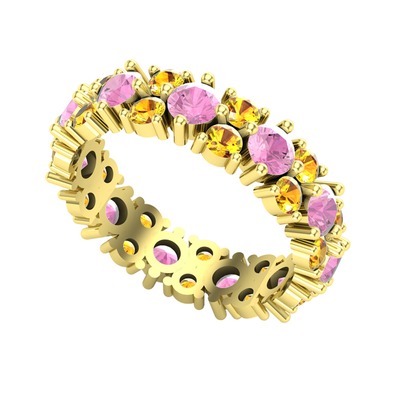 Pembe kuvars ve sitrin 14 ayar altın yüzük