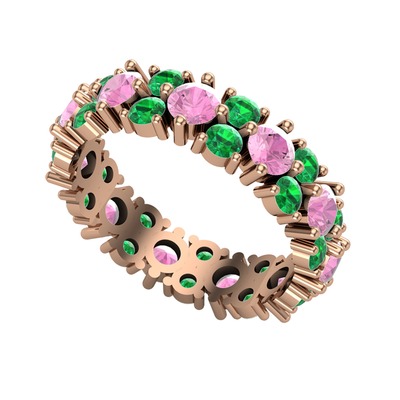 Pembe kuvars ve yeşil kuvars 18 ayar rose altın yüzük