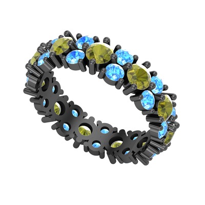 Peridot ve akuamarin 925 ayar siyah rodyum kaplama gümüş yüzük