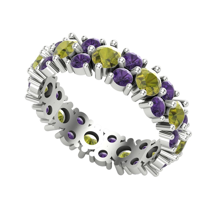 Peridot ve ametist 18 ayar beyaz altın yüzük