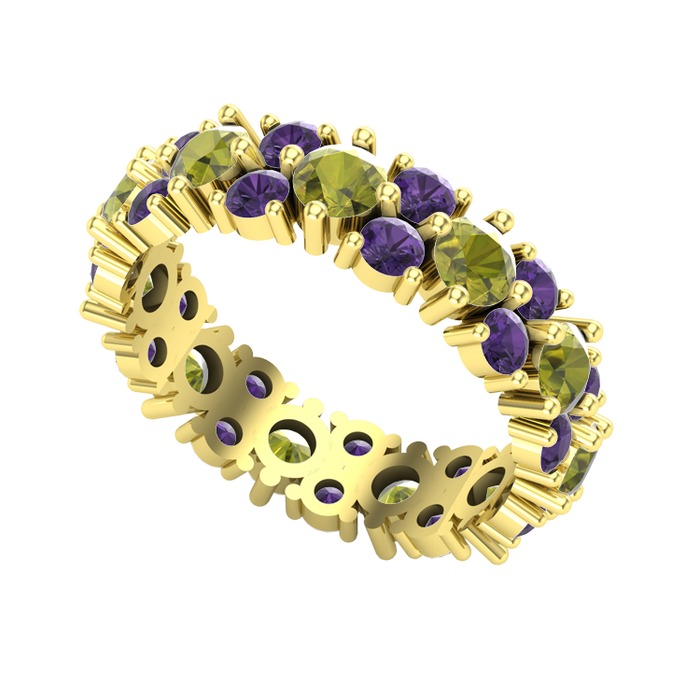 Peridot ve ametist 925 ayar altın kaplama gümüş yüzük