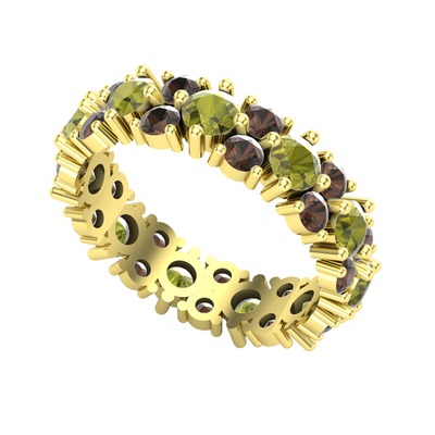 Peridot ve dumanlı kuvars 8 ayar altın yüzük