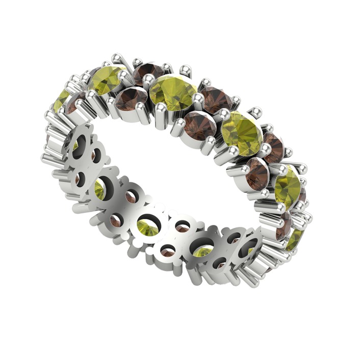 Peridot ve dumanlı kuvars 8 ayar beyaz altın yüzük