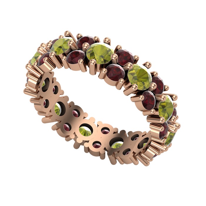 Peridot ve kök yakut 8 ayar rose altın yüzük