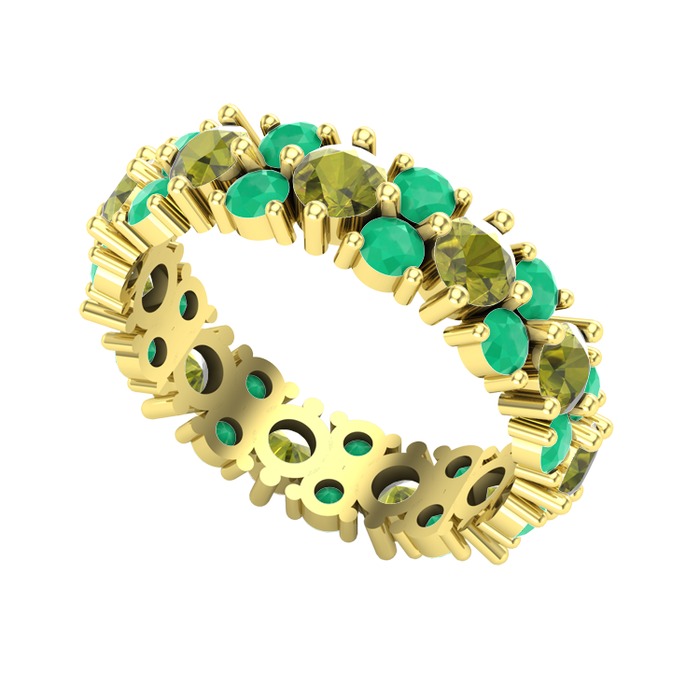 Peridot ve kök zümrüt 18 ayar altın yüzük