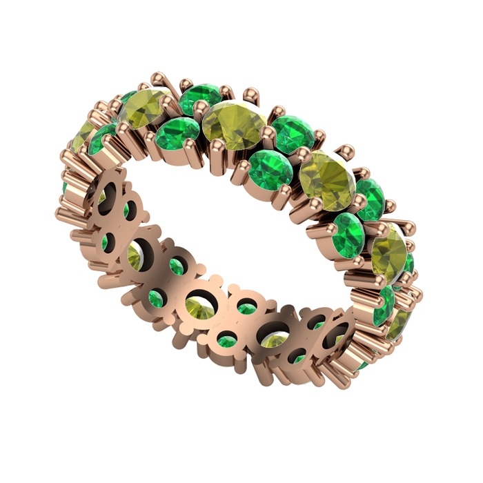 Peridot ve yeşil kuvars 14 ayar rose altın yüzük