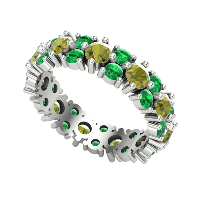 Peridot ve yeşil kuvars 8 ayar beyaz altın yüzük