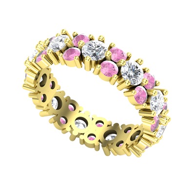Pırlanta ve pembe kuvars 14 ayar altın yüzük (5.5 karat)