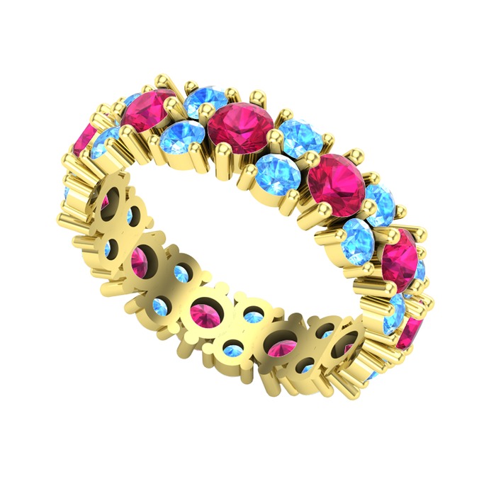 Rodolit garnet ve akuamarin 14 ayar altın yüzük