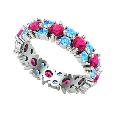 Rodolit garnet ve akuamarin 925 ayar gümüş yüzük