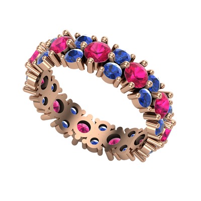 Rodolit garnet ve lab safir 14 ayar rose altın yüzük
