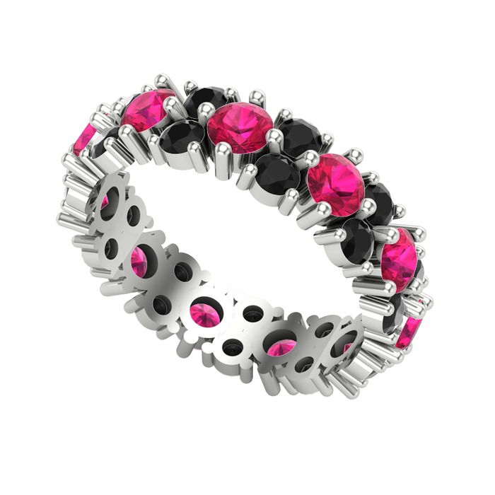 Rodolit garnet ve siyah zirkon 14 ayar beyaz altın yüzük