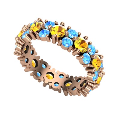 Sitrin ve akuamarin 14 ayar rose altın yüzük