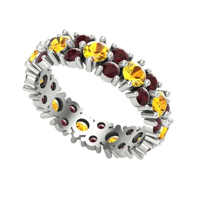 Sitrin ve kök yakut 14 ayar beyaz altın yüzük