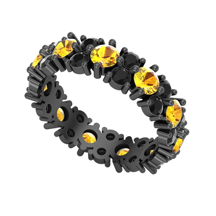 Sitrin ve siyah zirkon 925 ayar siyah rodyum kaplama gümüş yüzük