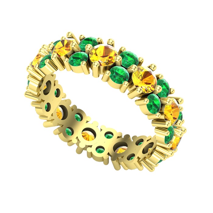 Sitrin ve yeşil kuvars 18 ayar altın yüzük
