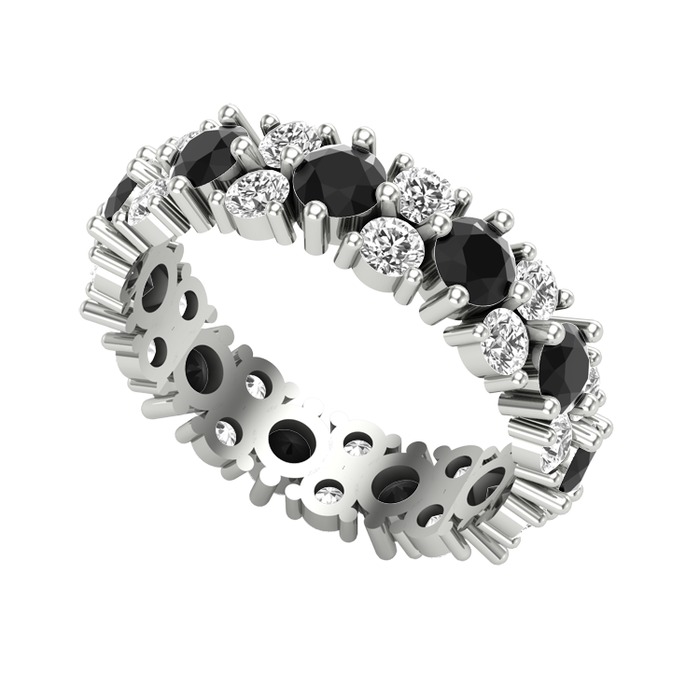 Siyah zirkon ve beyaz zirkon 14 ayar beyaz altın yüzük