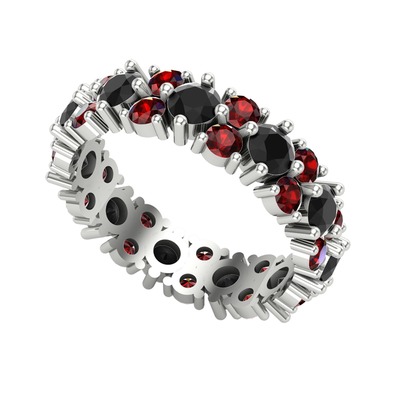 Siyah zirkon ve garnet 925 ayar gümüş yüzük