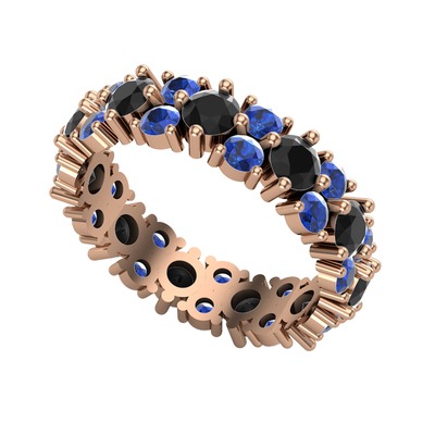Siyah zirkon ve lab safir 18 ayar rose altın yüzük