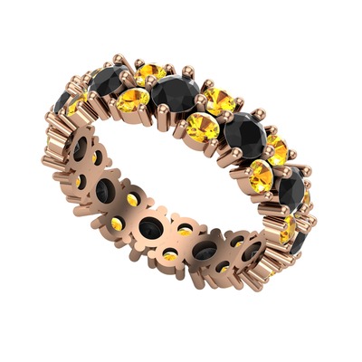 Siyah zirkon ve sitrin 8 ayar rose altın yüzük
