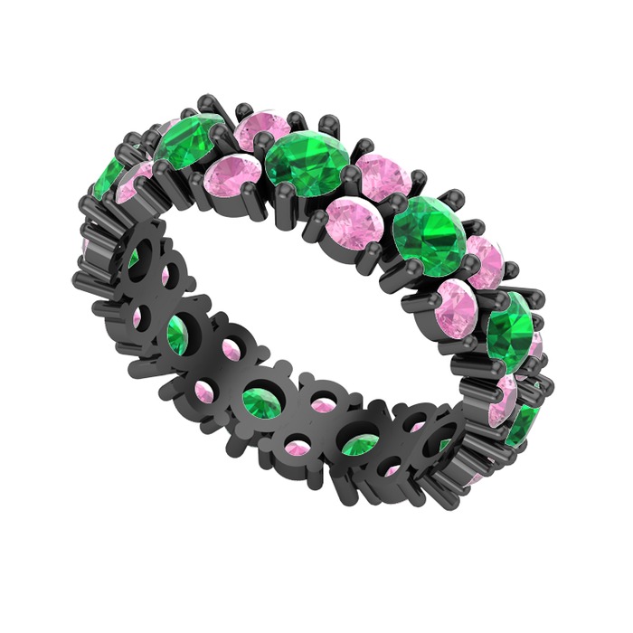 Yeşil kuvars ve pembe kuvars 925 ayar siyah rodyum kaplama gümüş yüzük