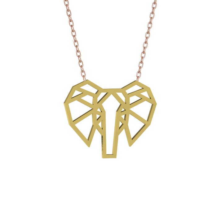 Büyük Origami Fil Kolye - 18 ayar altın kolye (50 cm rose altın rolo zincir)