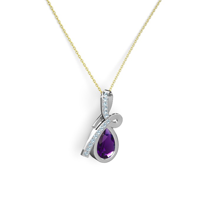 Akuamarin ve ametist 8 ayar beyaz altın kolye (40 cm altın rolo zincir)
