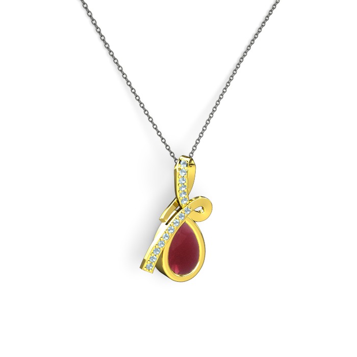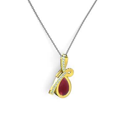 Akuamarin ve kök yakut 18 ayar altın kolye (40 cm gümüş rolo zincir)