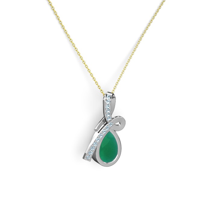 Akuamarin ve kök zümrüt 8 ayar beyaz altın kolye (40 cm altın rolo zincir)