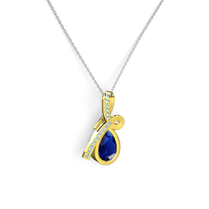 Akuamarin ve lab safir 8 ayar altın kolye (40 cm beyaz altın rolo zincir)