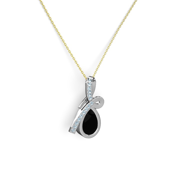 Akuamarin ve siyah zirkon 8 ayar beyaz altın kolye (40 cm altın rolo zincir)
