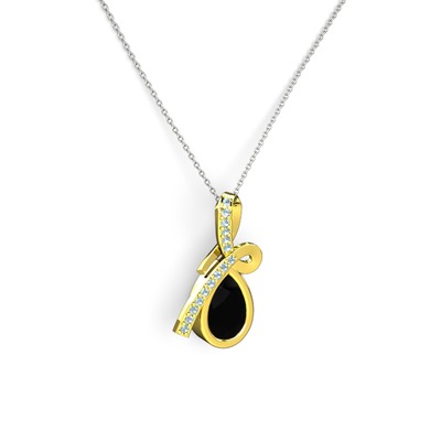 Akuamarin ve siyah zirkon 925 ayar altın kaplama gümüş kolye (40 cm beyaz altın rolo zincir)