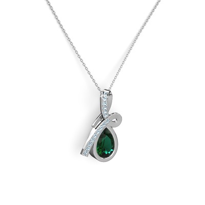 Akuamarin ve yeşil kuvars 14 ayar beyaz altın kolye (40 cm gümüş rolo zincir)