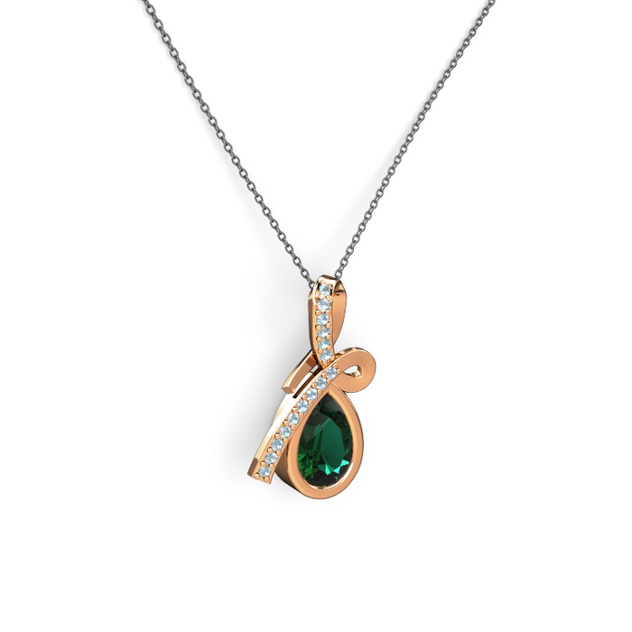 Akuamarin ve yeşil kuvars 18 ayar rose altın kolye (40 cm gümüş rolo zincir)