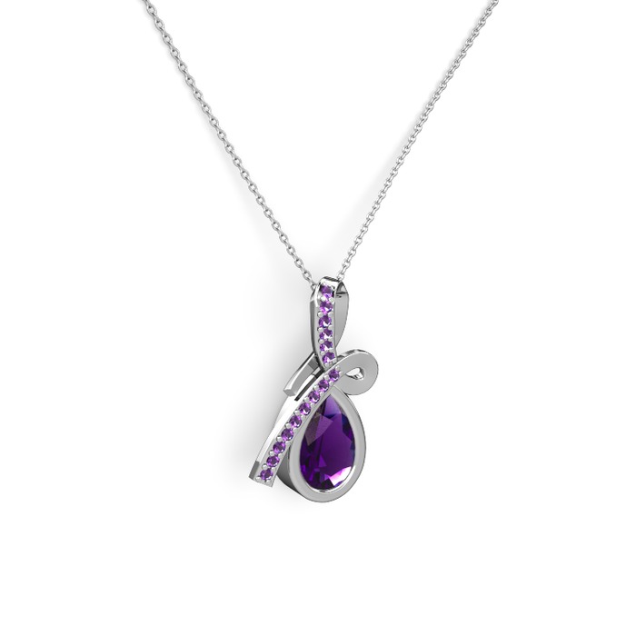Ametist 14 ayar beyaz altın kolye (40 cm gümüş rolo zincir)