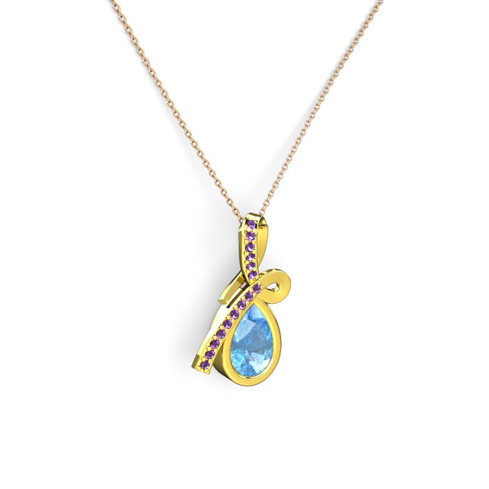 Ametist ve akuamarin 14 ayar altın kolye (40 cm rose altın rolo zincir)